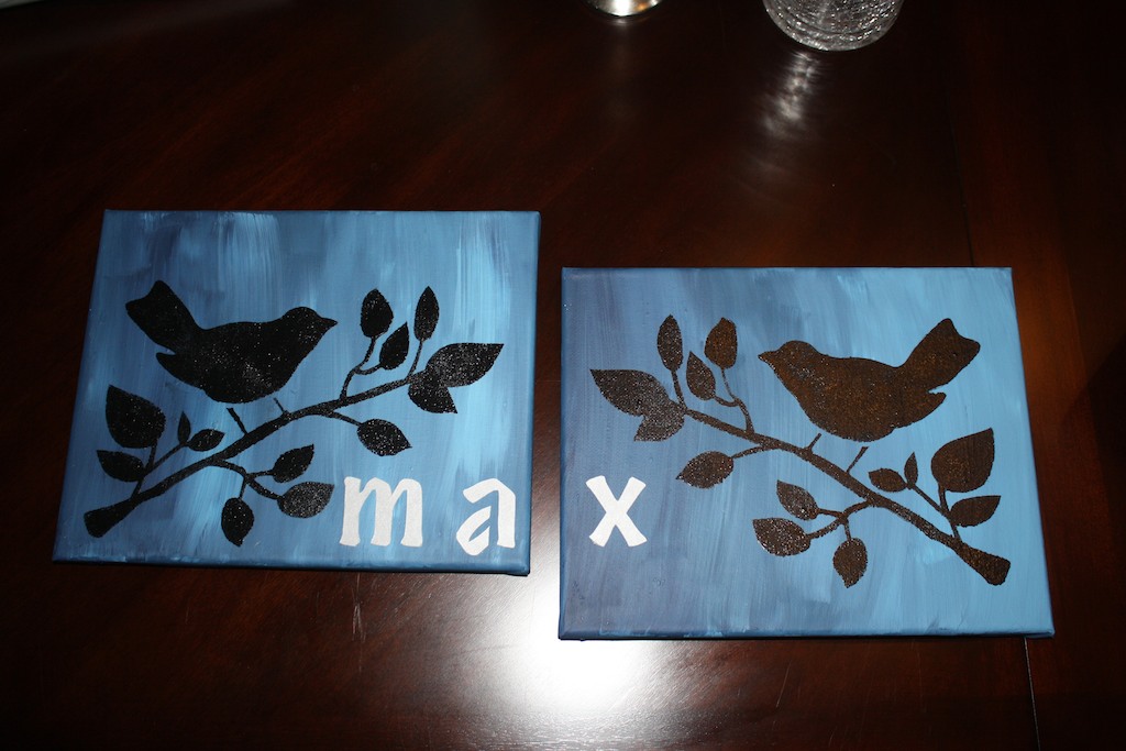These are stencils with a basic background that I made for Max (his name is cut out, also using a stencil, and glued on to the canvas).